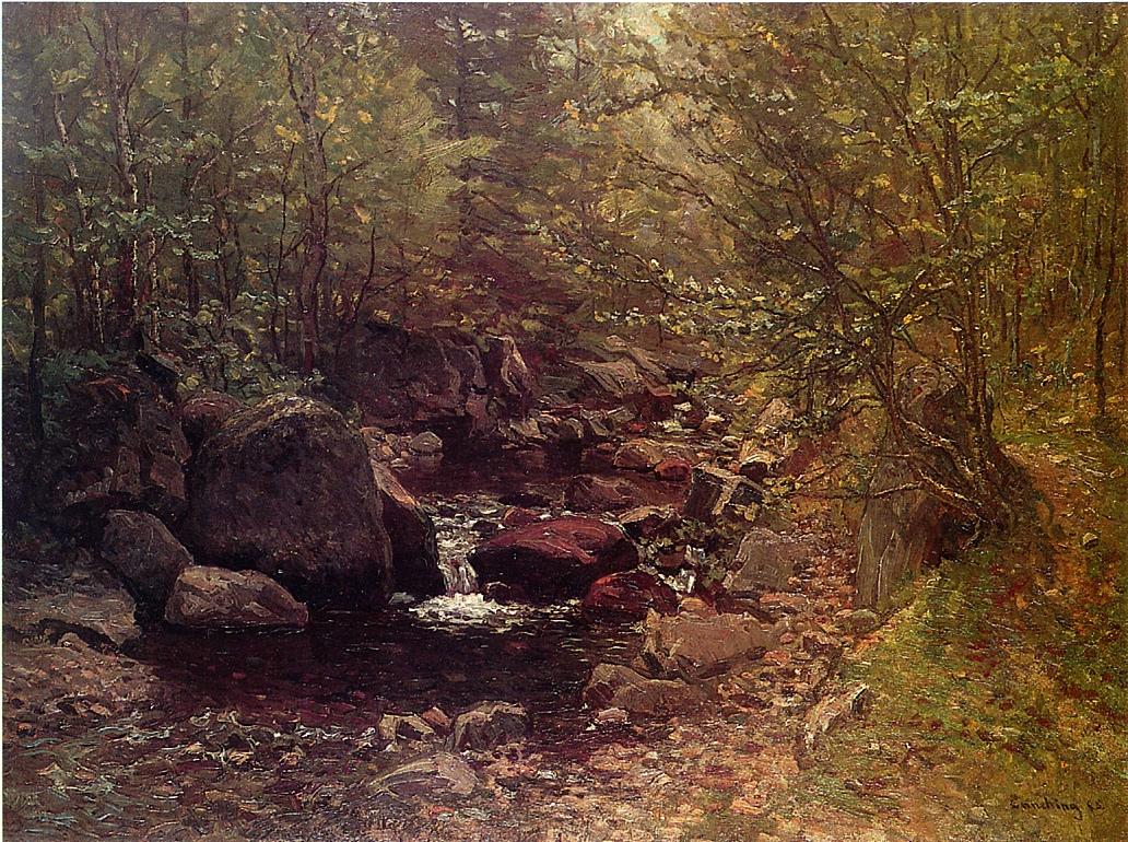 Félix Edouard Vallotton (1865-1925) was a Swiss/French painter and printmaker. He was a member of the group of artists known as Les Nabis, who followed the Impressionists, and used highly stylized forms and colors to explore the emotionality of their subjects. Born in Switzerland, Vallotton moved to Paris in 1882 to study at the Académie Julian. He spent much of his time studying the old masters at the Louvre, and his earliest works are rather academic. His first self-portrait received honorable mention at the Salon of 1886. In the following decade, Vallotton developed his painting and began creating woodcut portraits of prominent figures, beginning with Paul Verlaine. He was instrumental in the revival of the woodcut as an artistic medium. His painting encompasses a wide variety of styles and subjects, including landscape, portraits, and genre scenes. The Red Room is a powerful example of Vallotton's style and skill. We see the angularity of his forms and the intensity of his colors. The composition is incredibly potent here: the man and woman are both standing in the doorway, thus far leaving the sedate room uninterrupted. However the tension between them is palpable, and it pervades the picture space and this sharp, vibrant room becomes taut with tension as well. Vallotton increases this effect with stark shadows and angles. The red of the chamber becomes the red of the couple's sexual tension. The shadows of the doorway, meanwhile, nearly swallow the couple so that they are barely visible. The effect suggests that they can only be fully realized by entering this bright room, and if they move in the other direction, if they retreat from their passion, they will cease to exist.